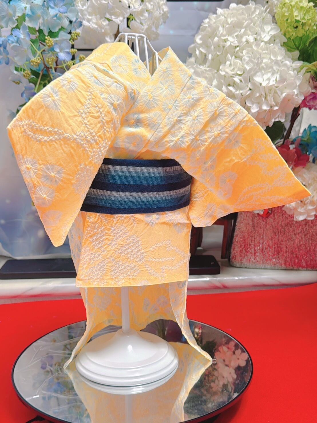 # 有松絞りの浴衣 黄色 サイズSM~L 商品説明文