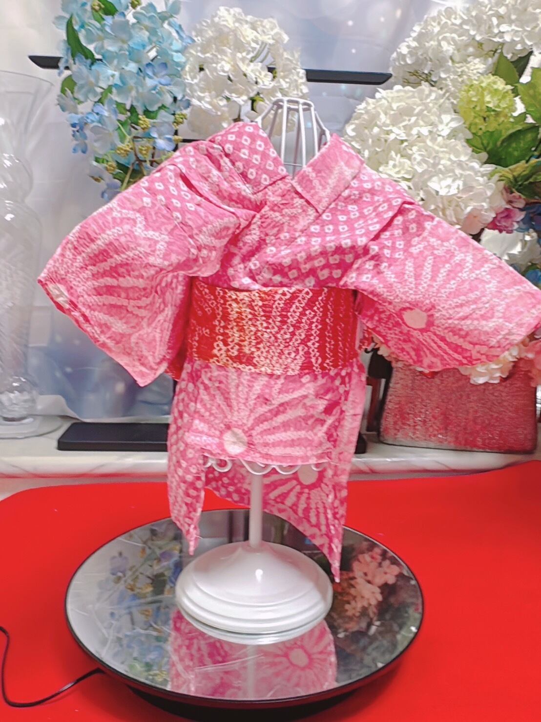 # 有松絞りの浴衣 濃いピンク色 サイズSM~L 商品説明文