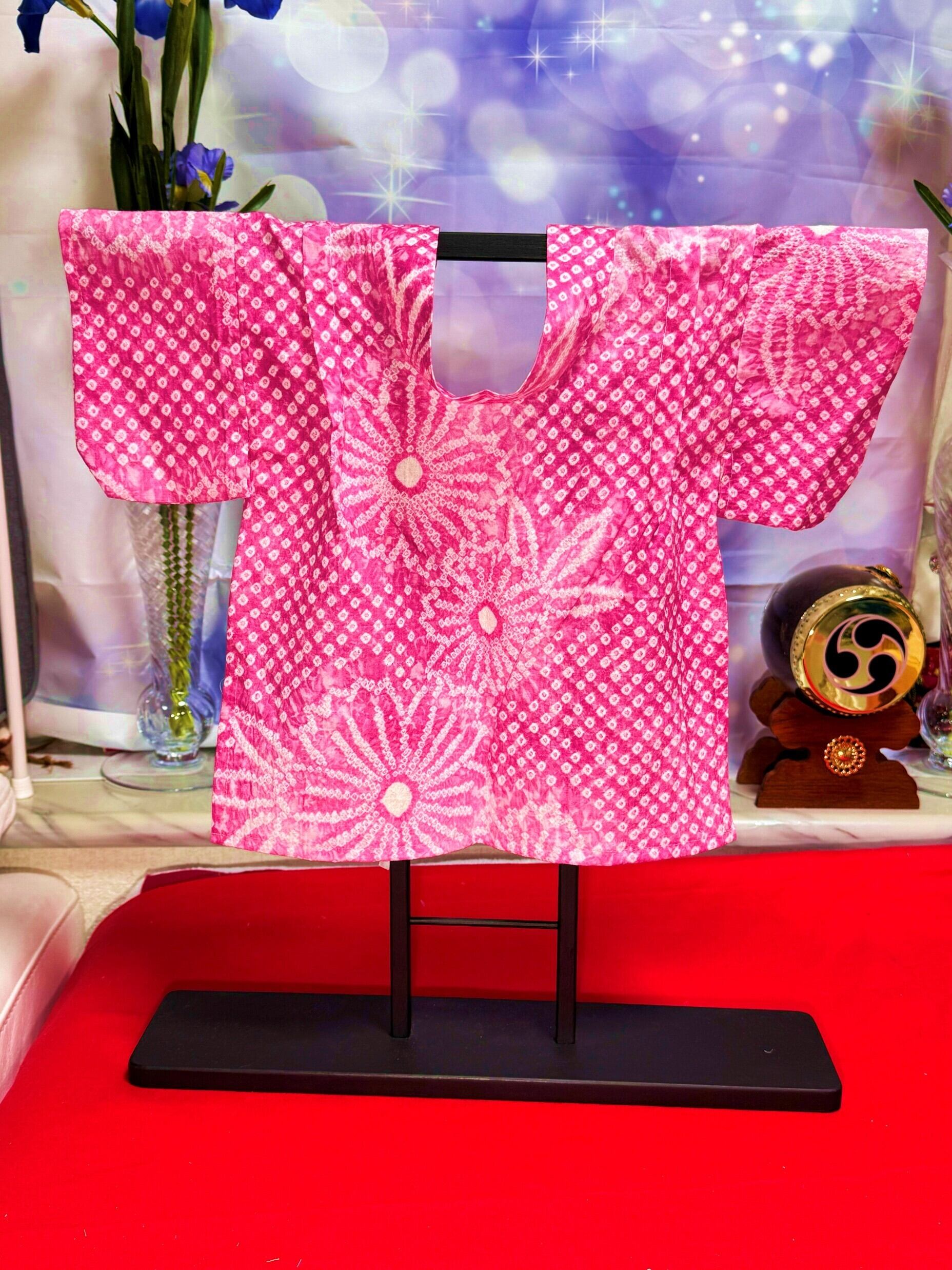 この豊かな濃いピンク色は、視覚的なインパクトを与えつつも、落ち着いた雰囲気を演出します。特別なお出かけや夏のイベントにぴったりな一枚です。日本独自の絞り染め技法を用い、一つ一つ手作業で仕上げられた模様は、まさにこの洋服だけの特別なデザインです。着心地の良い柔らかな生地は、軽やかな動きもサポートし、長時間の着用でも快適さを保ちます。シンプルなスタイルだからこそ、さまざまなアクセサリーや帯とのコーディネートが楽しめるのも魅力です。