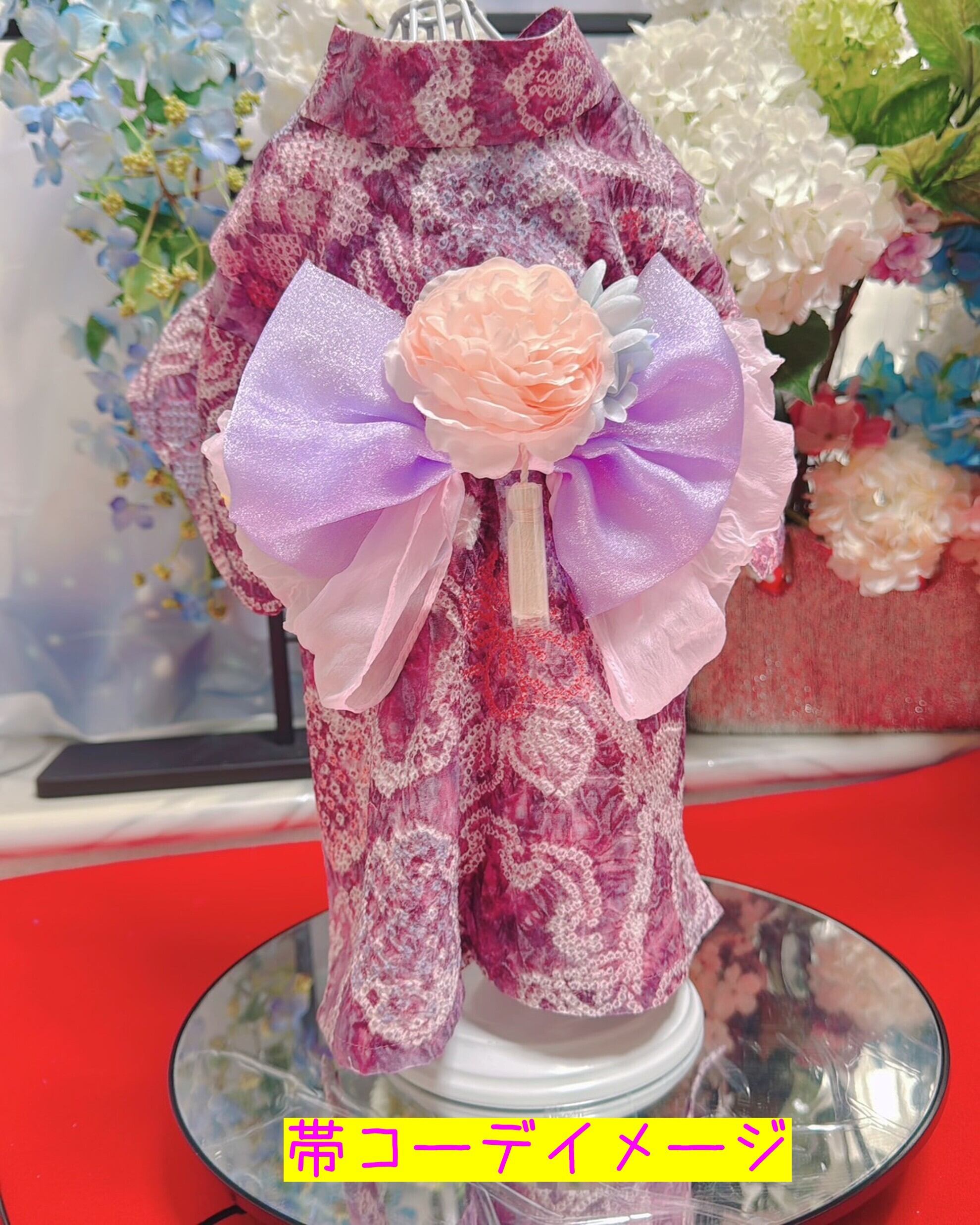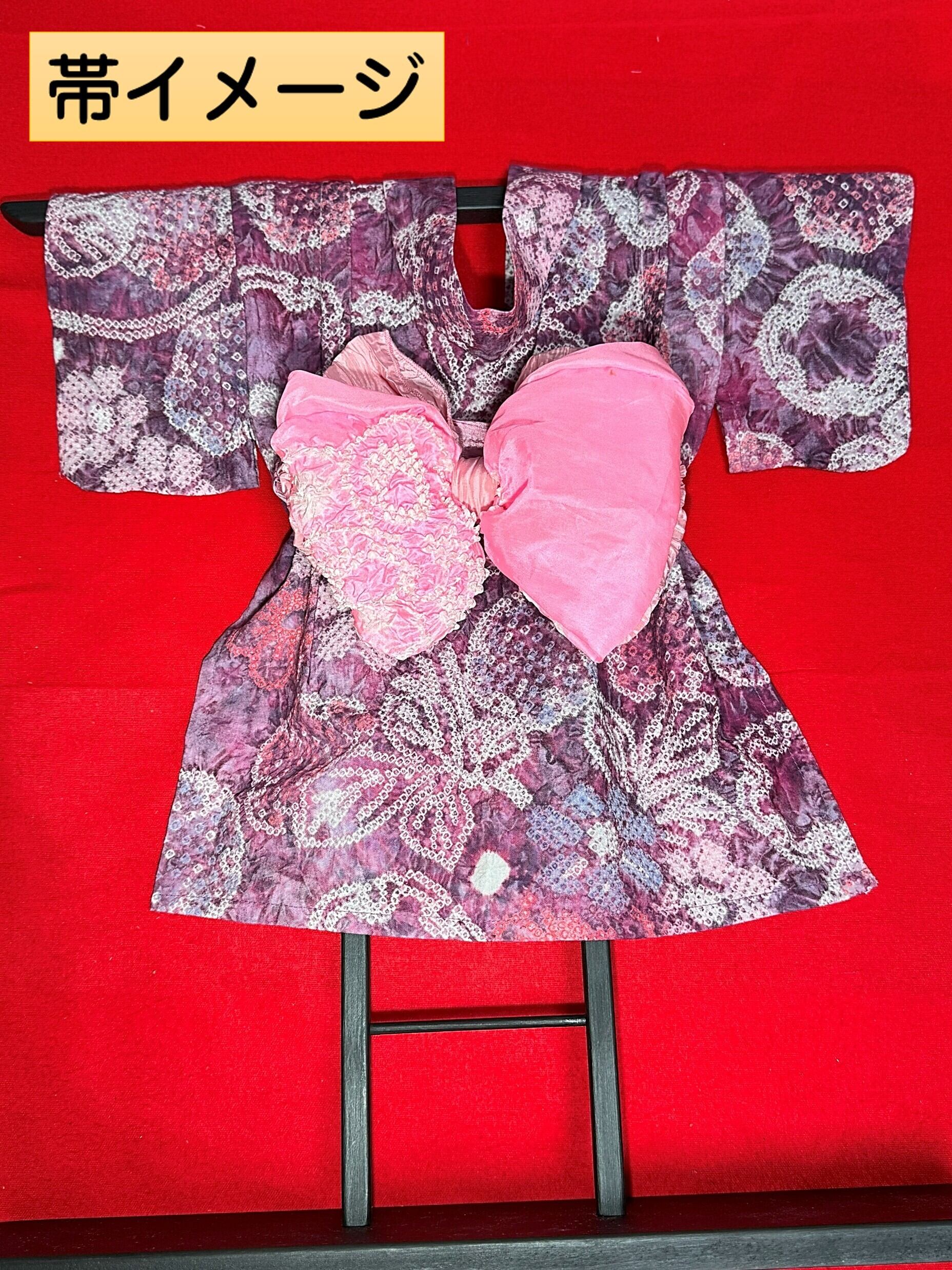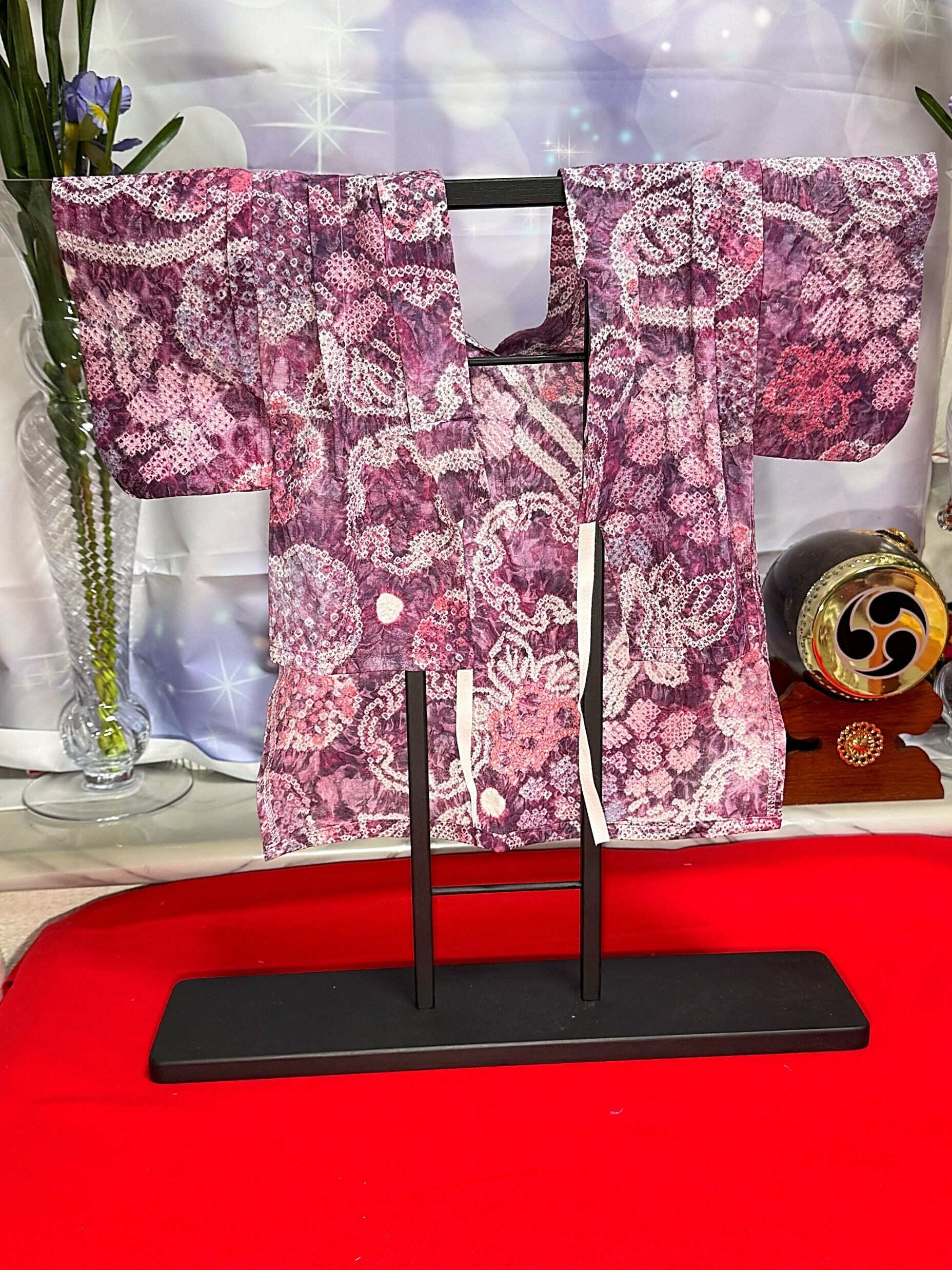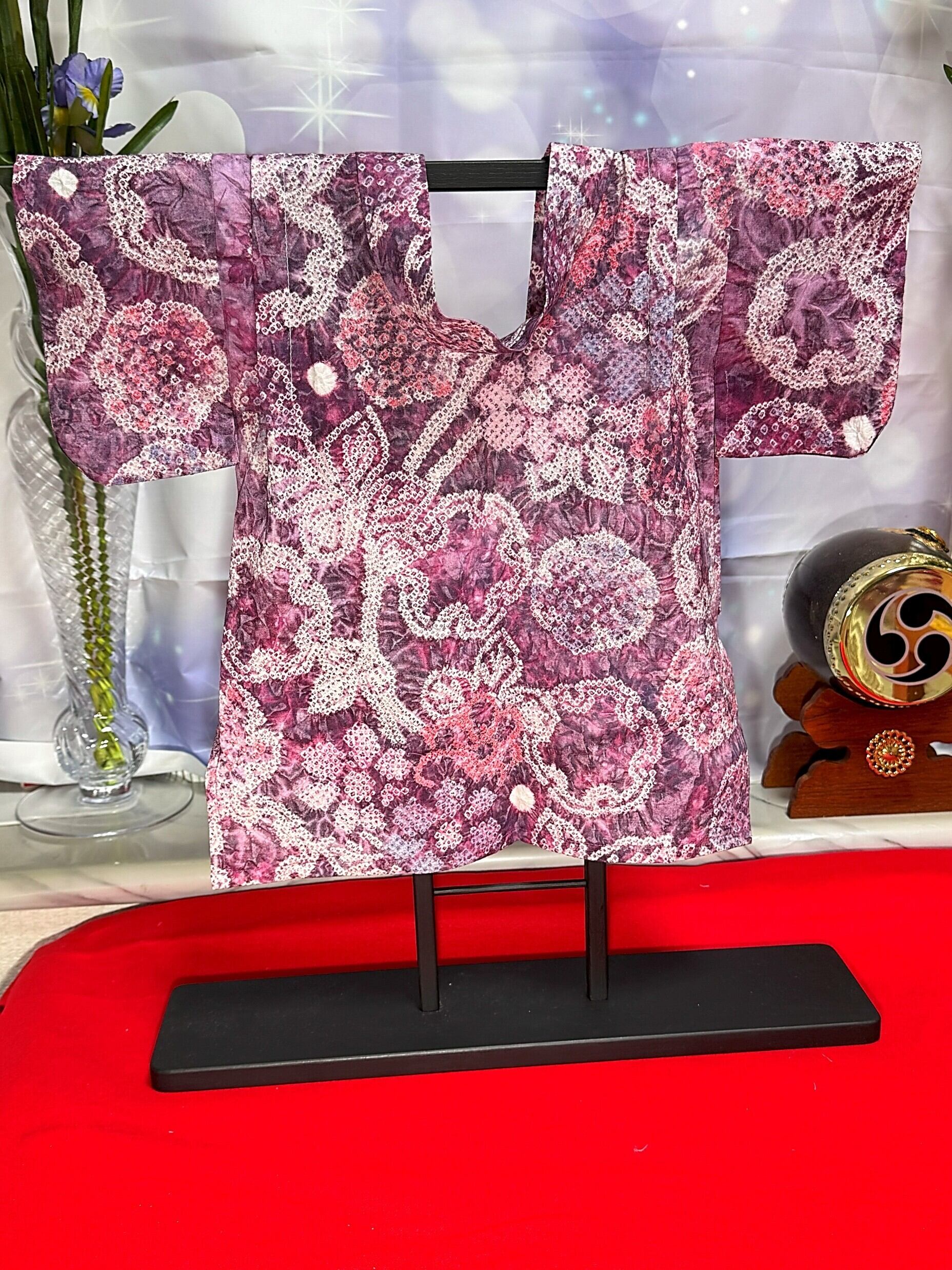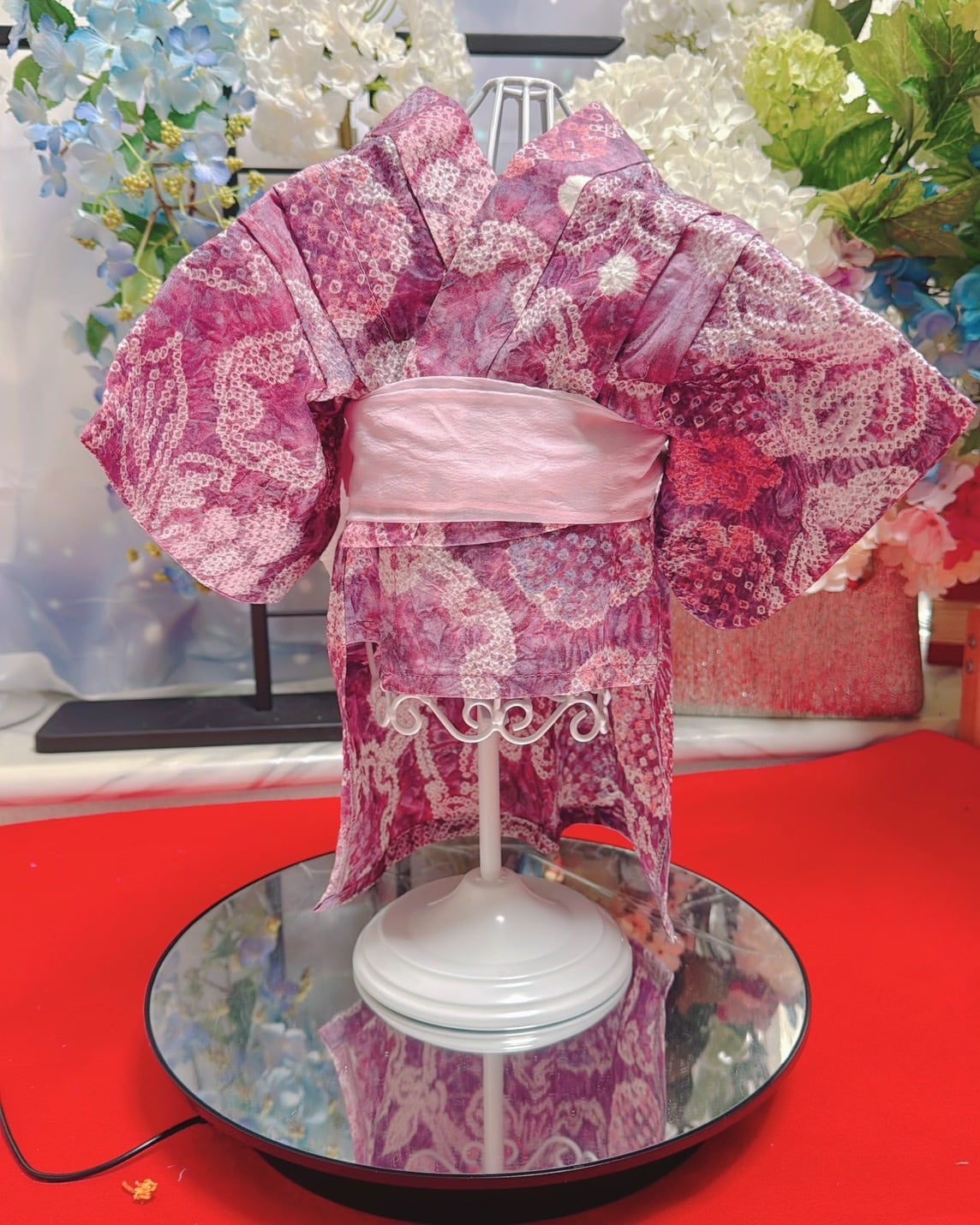 # 有松絞りの浴衣 紫ピンクの花柄 サイズSM~L 商品説明文
