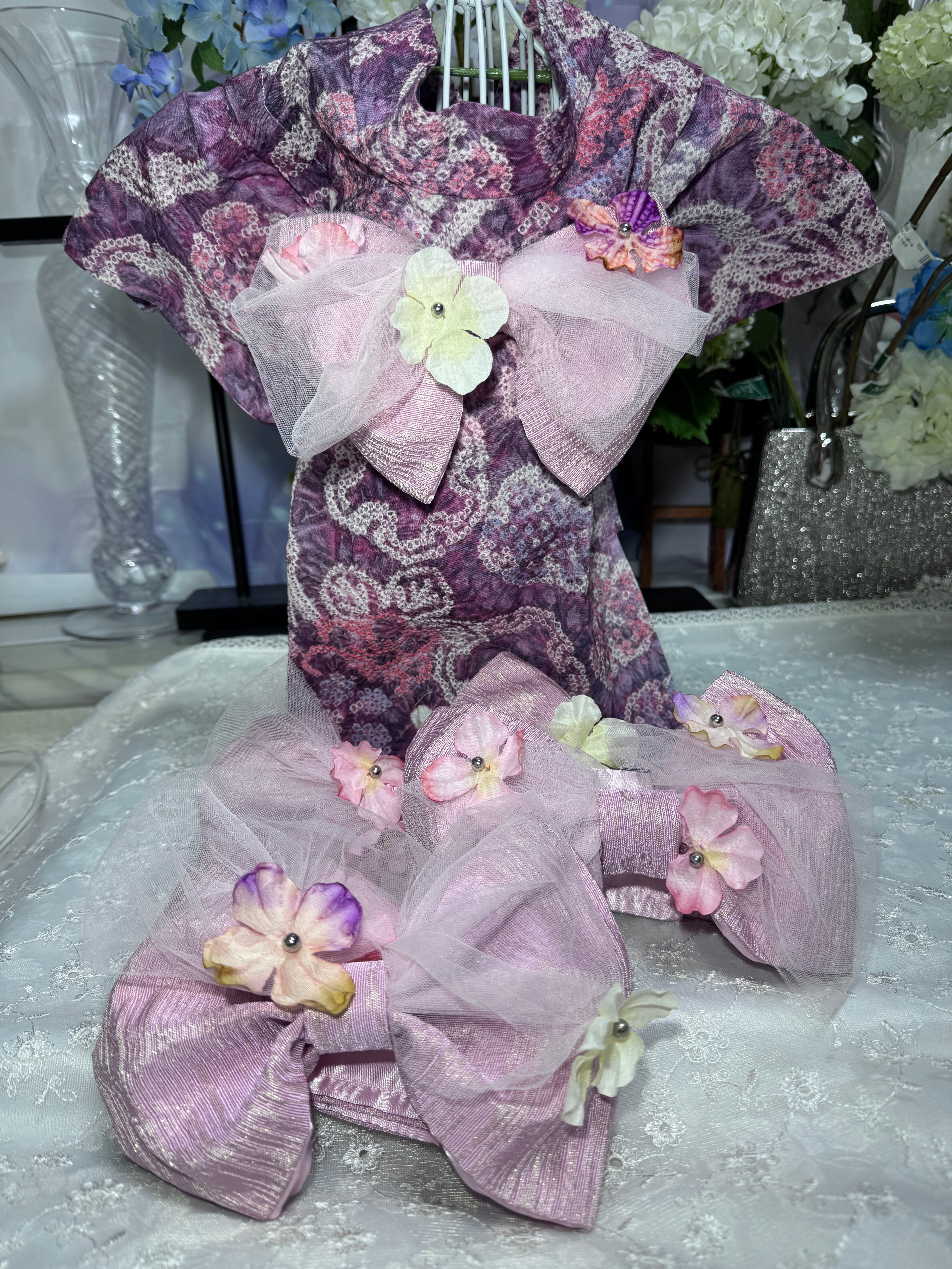 ※オーガンジーに付けたお花にはバラつきがありますので見本写真とは若干異なる場合がございます、ご了承ください。