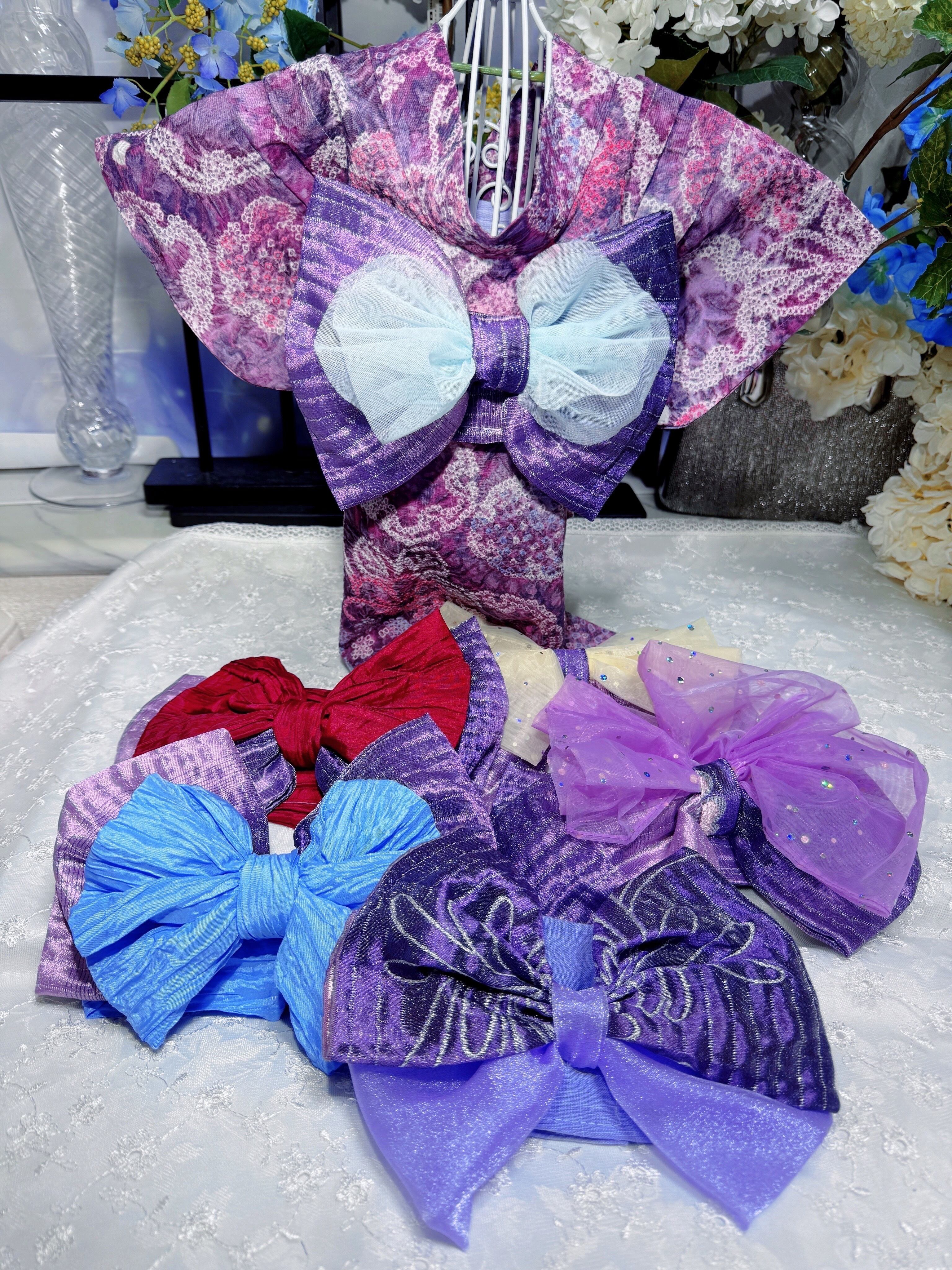 大人キレイな紫色のしわ兵児帯にラメオーガンジーや色違いのしわ兵児帯を合わせて
