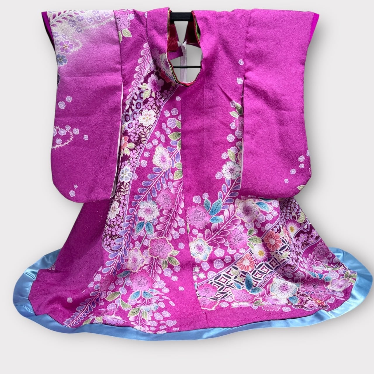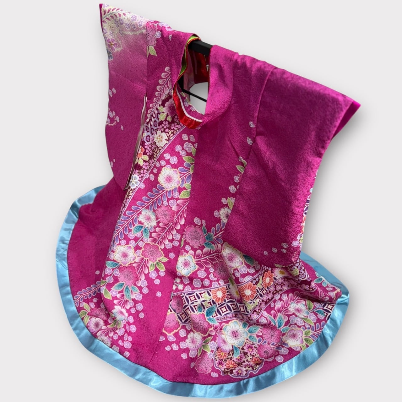 ★【正絹辻が花】犬服 着物 大振袖 お引きずり 辻が花(ピンク)