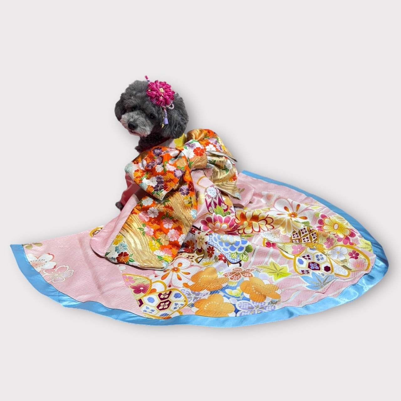 豪華な犬服、正絹の着物、大振袖のお引きずりです♡