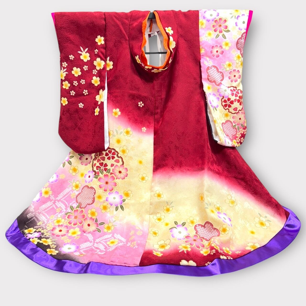 薔薇色と黄色の美しいグラデーションに優雅な桜の模様が映える一着です✨