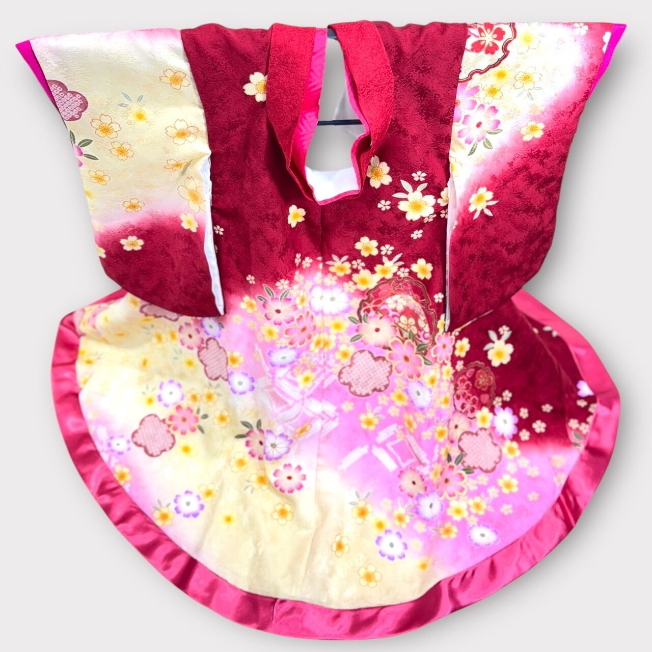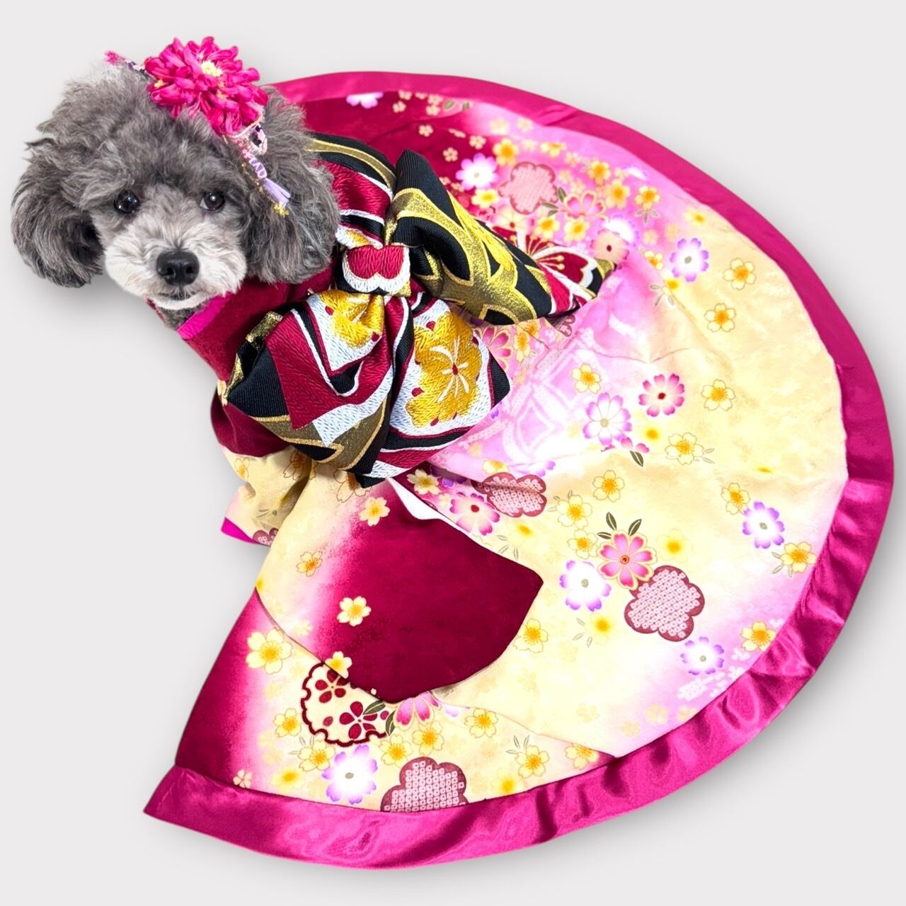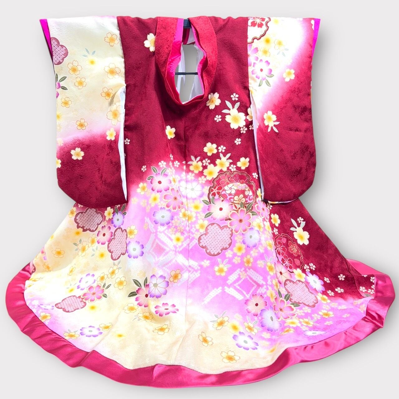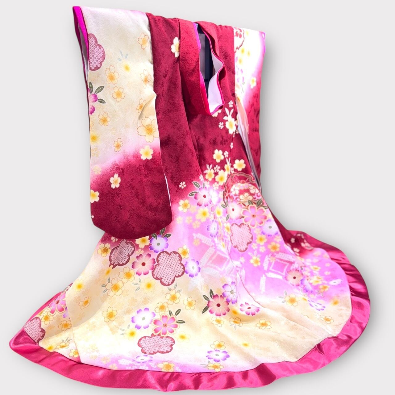 薔薇色と黄色の美しいグラデーションに優雅な桜の模様が映える一着です✨