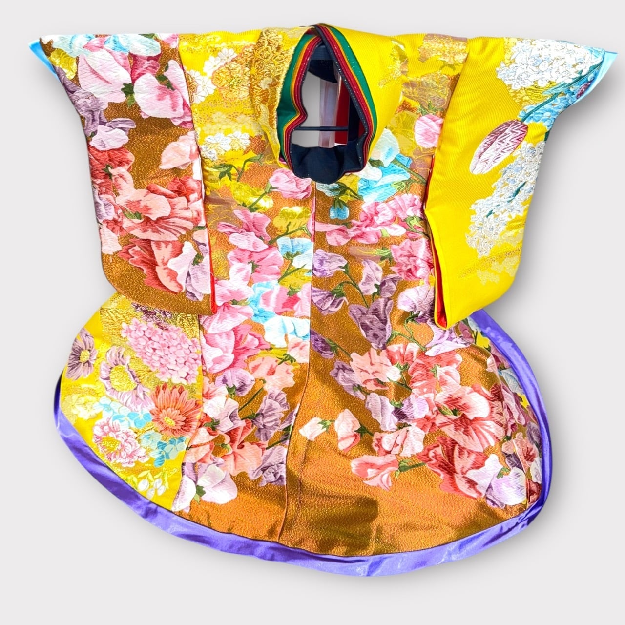 可愛くて豪華な総刺繍で正絹の色打掛をうちのコ用に大振袖・お引きずりデザインで製作しました♡