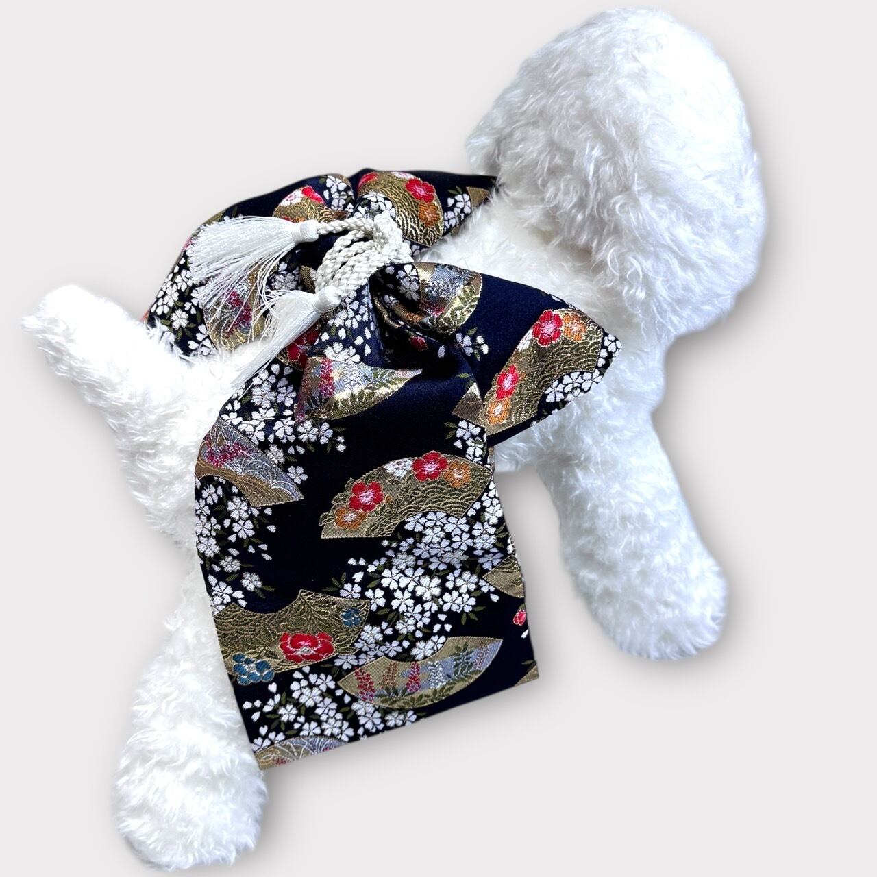 黒地に金糸で描かれた扇と梅柄が魅力的な一品です✨