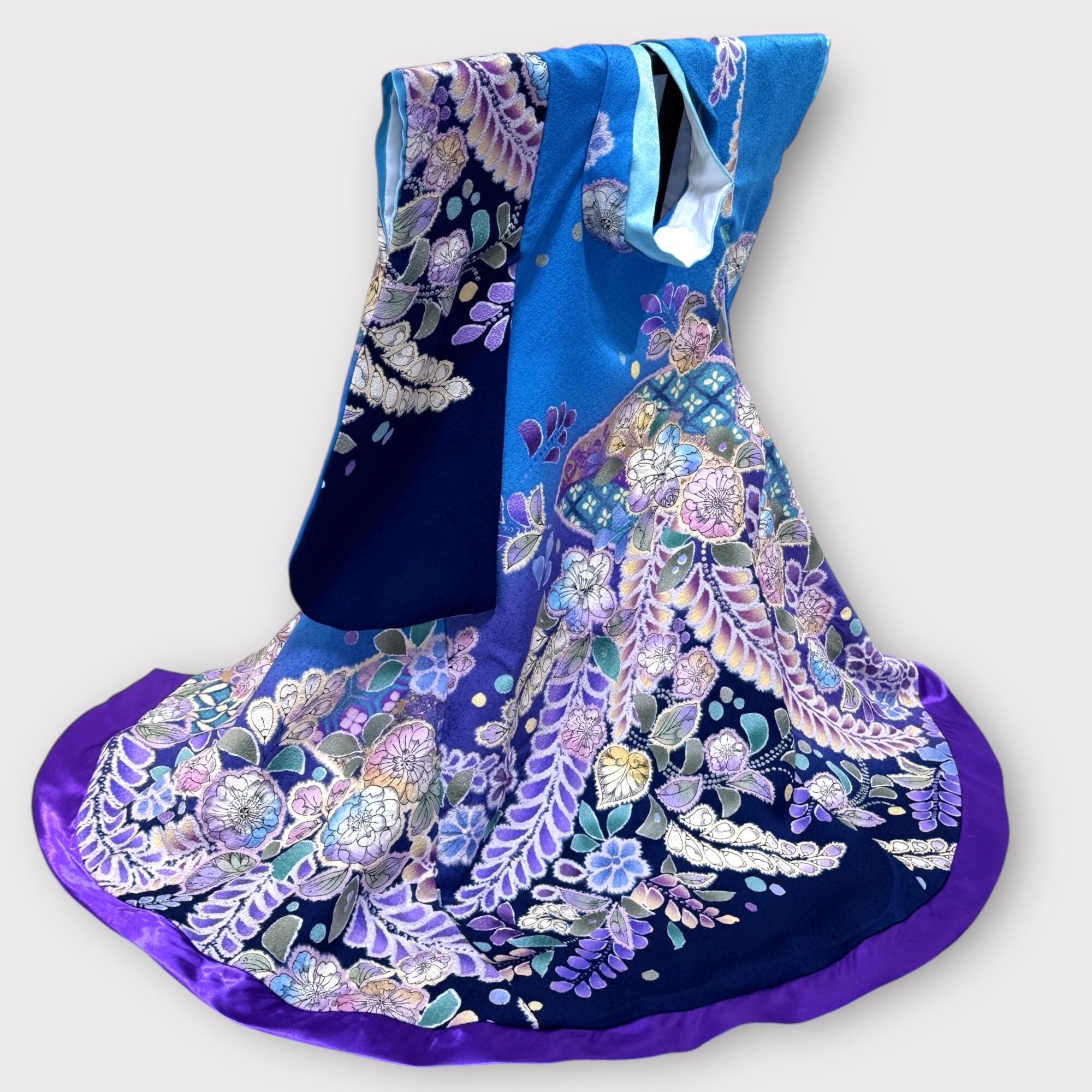 ✨青地に紫の藤が見事な逸品です✨